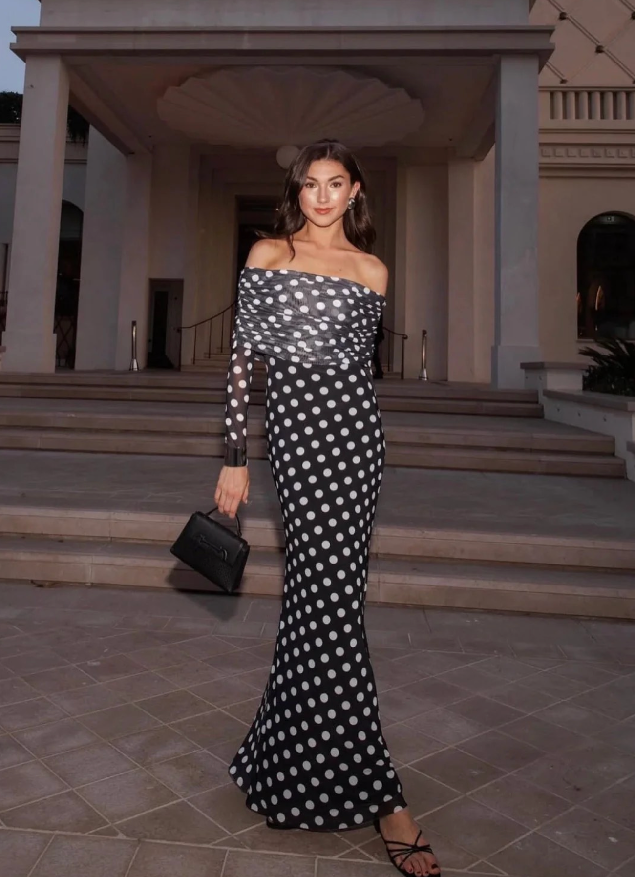 HireExplore the latest designer styles available in sizes 6-14. Ft. Thelma Dress in Diagonal Dot