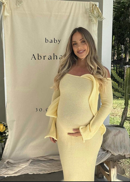 Sandrine Off Shoulder Knit Maxi Dress, Lemon