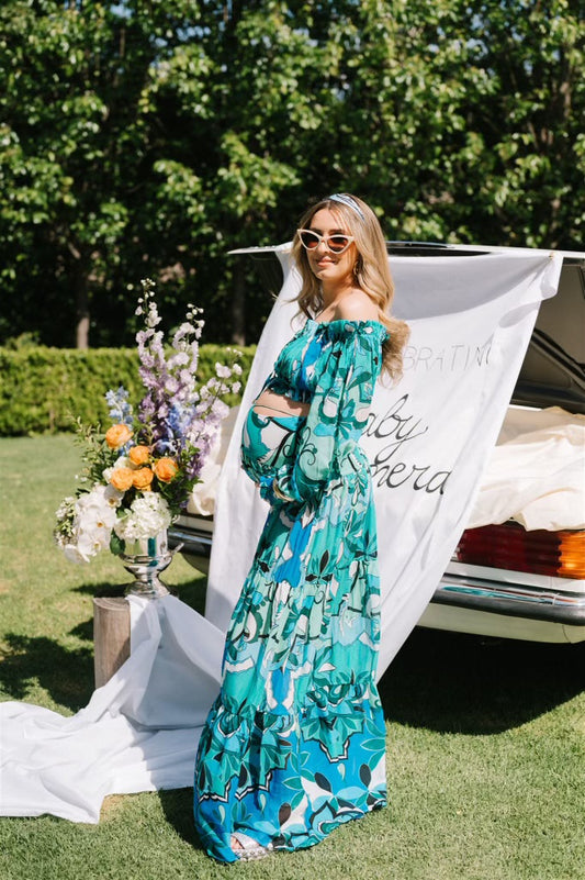 By Nicola Fiesta Off Shoulder Maxi Dress In Bleu