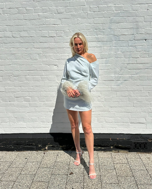 16 Arlington Adelaide Feather-Trim Minidress, Blue