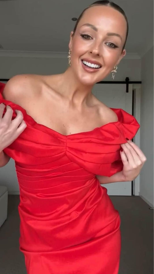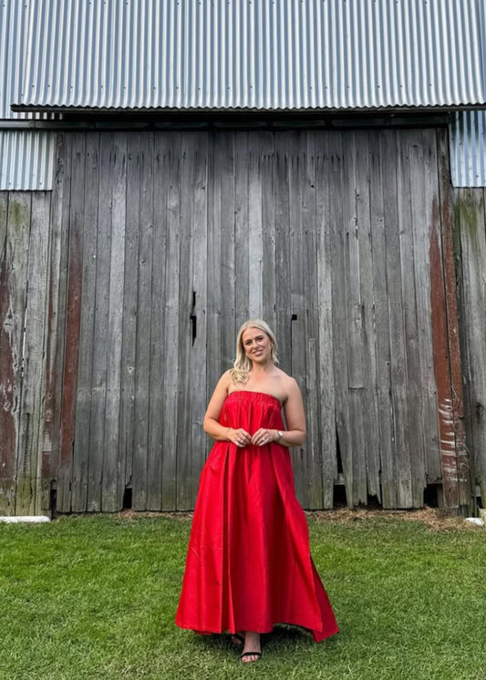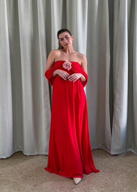 Bernadette Daffodil Crepe De Chine Gown, Red