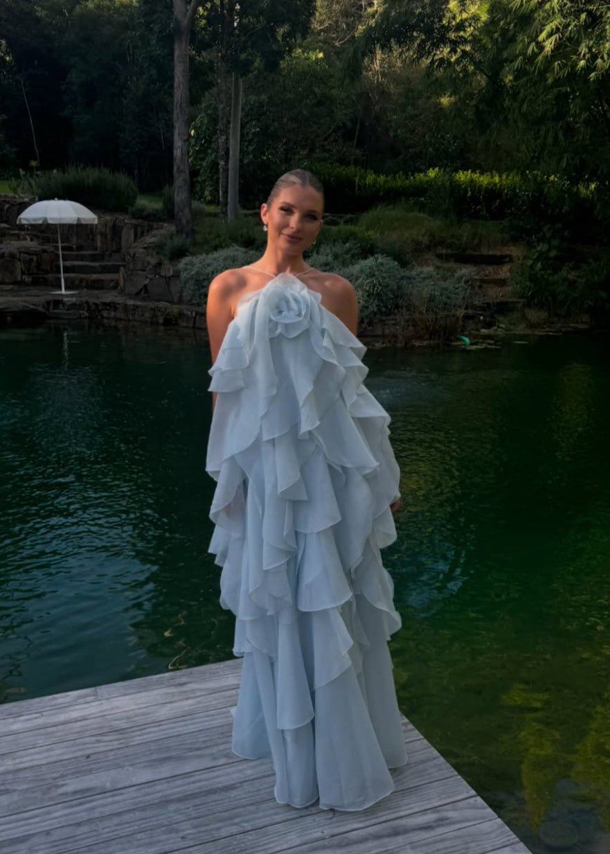 Aje Pandorea Layered Maxi Dress, Silver Blue