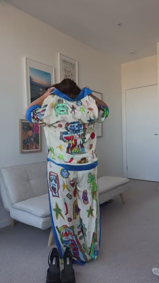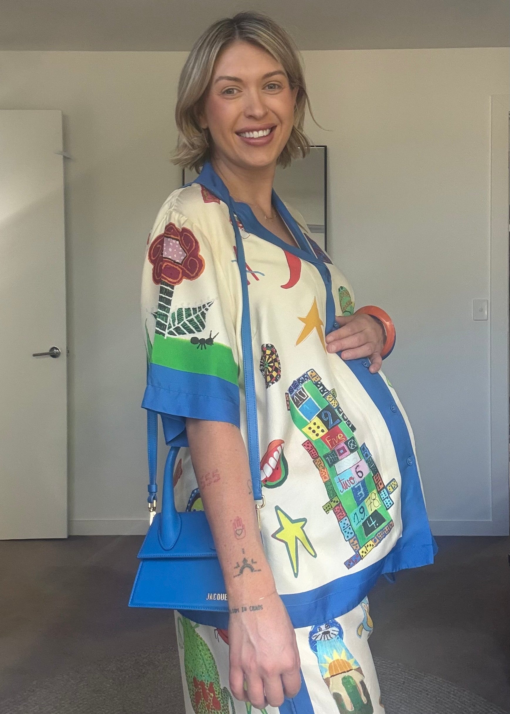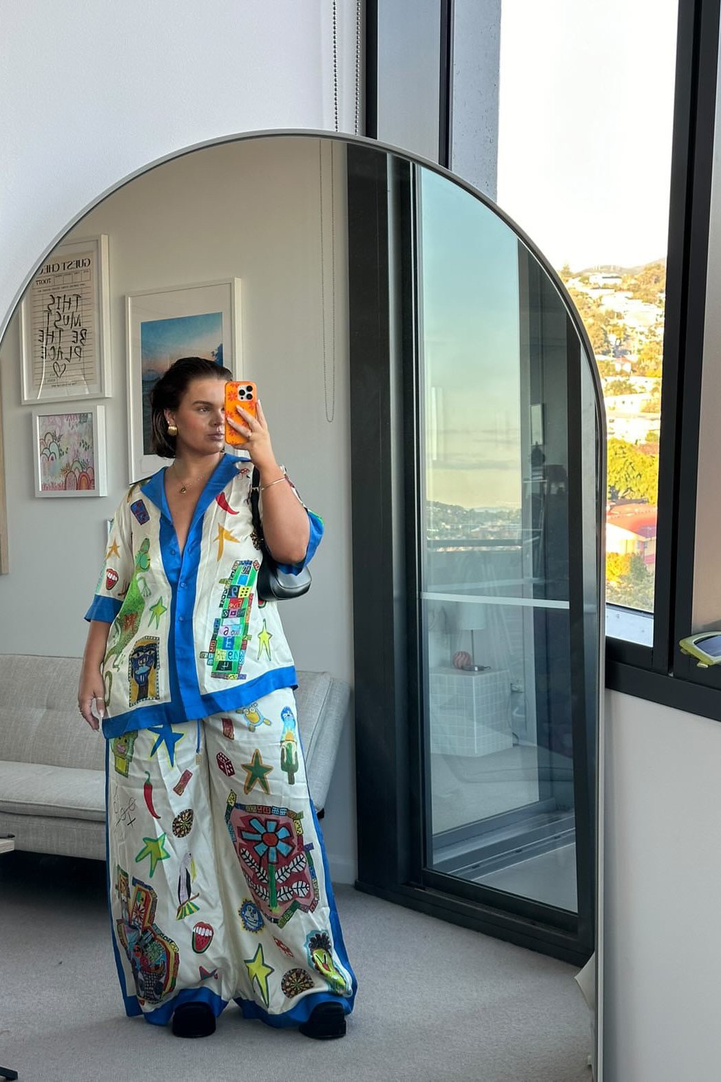 *Please note - that we do not recommend any sizes above that are listed on the pants. This applies for ALL matching sets at +One. We also advise that the shirt is worn loose and free flowing with NO front knots tied. While much of our range accommodates for a range of sizes, our sets are more focused on post-partum and non pregnant clients.