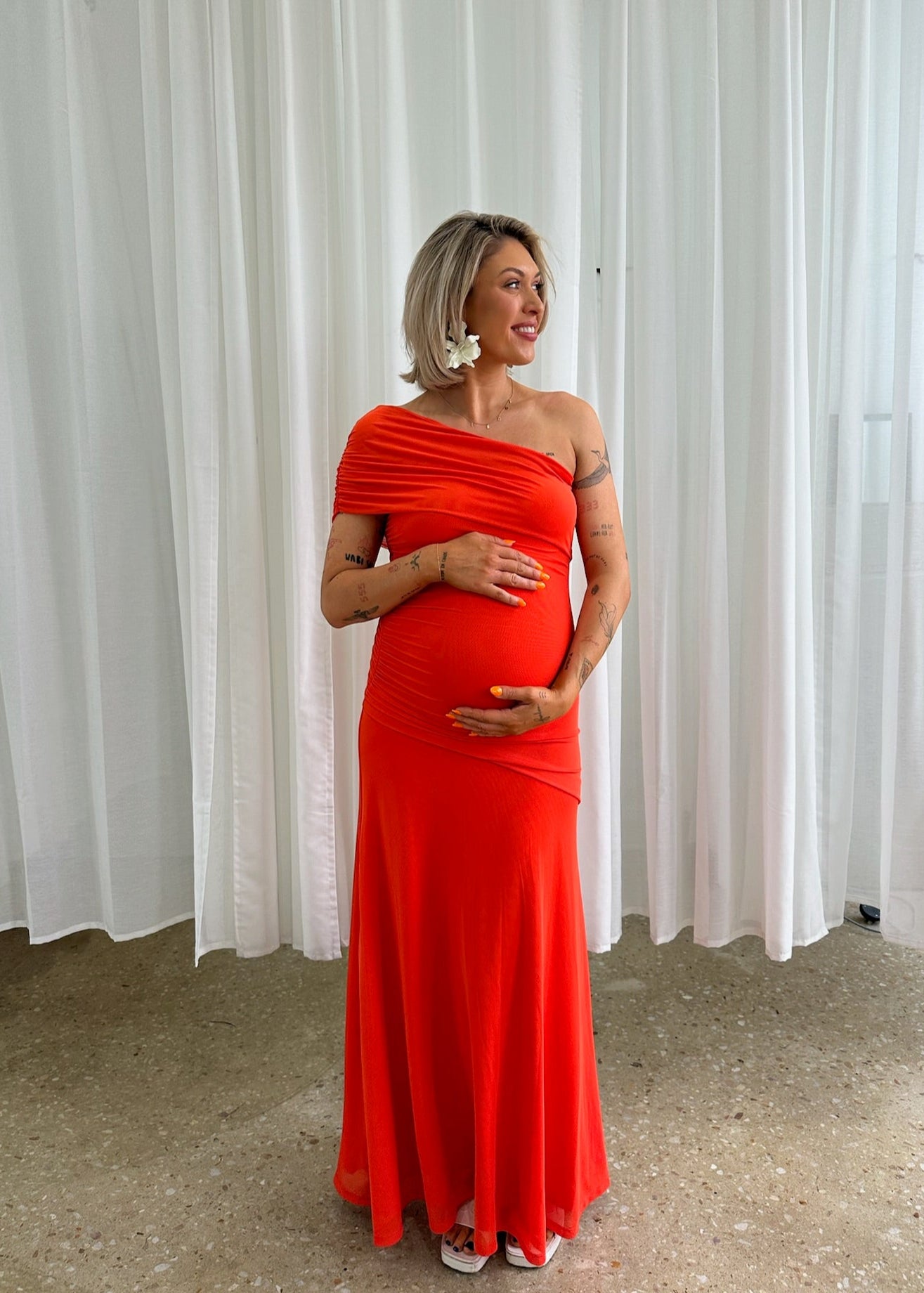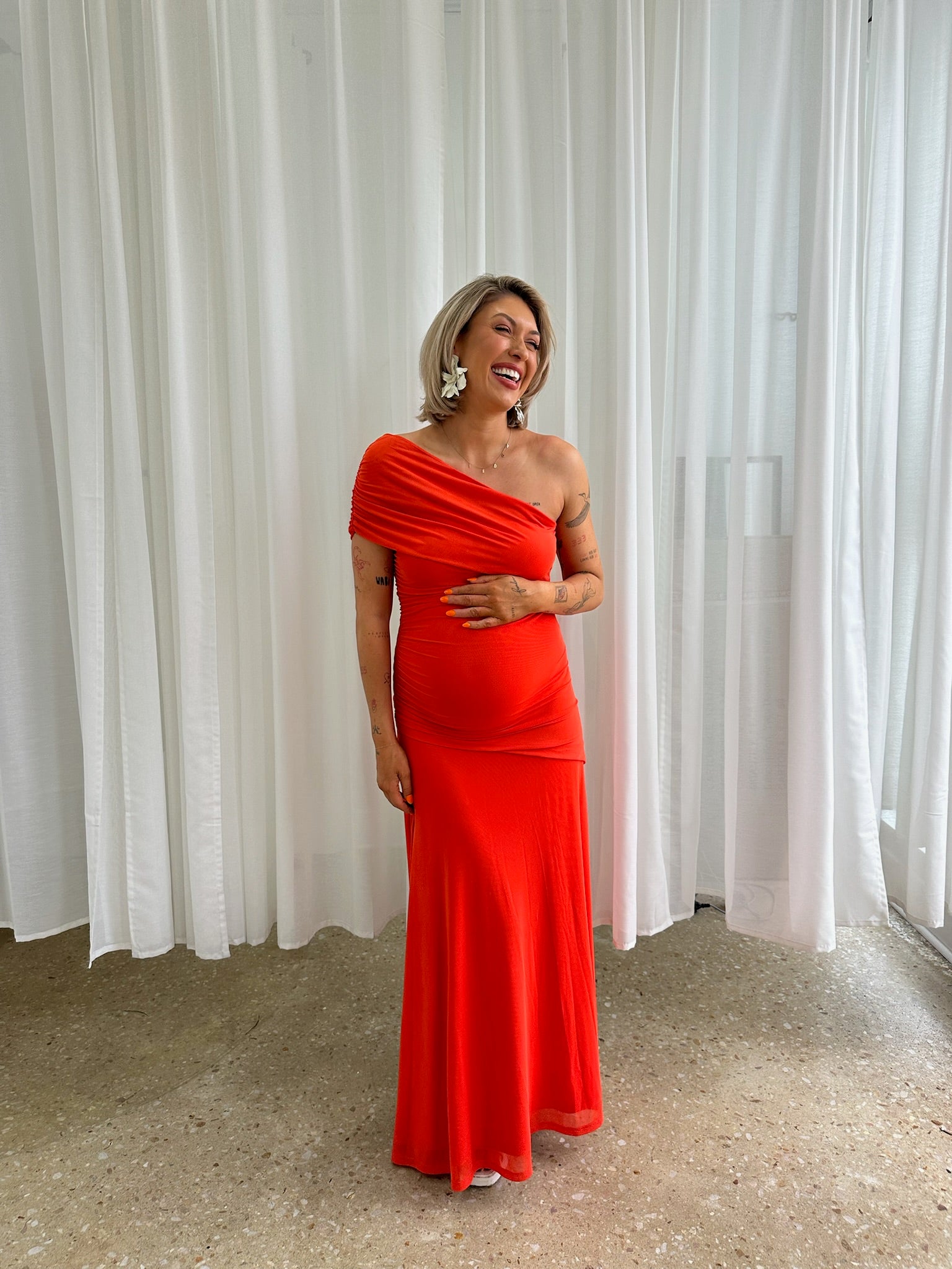 By Nicola Fiesta Off Shoulder Maxi Dress in Fiesta