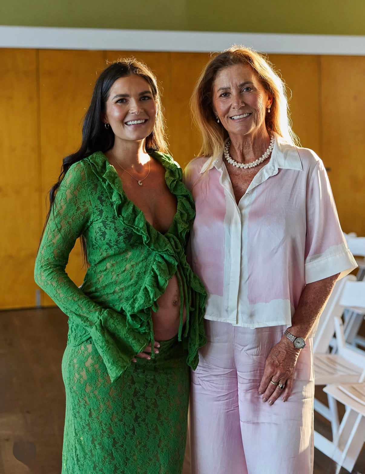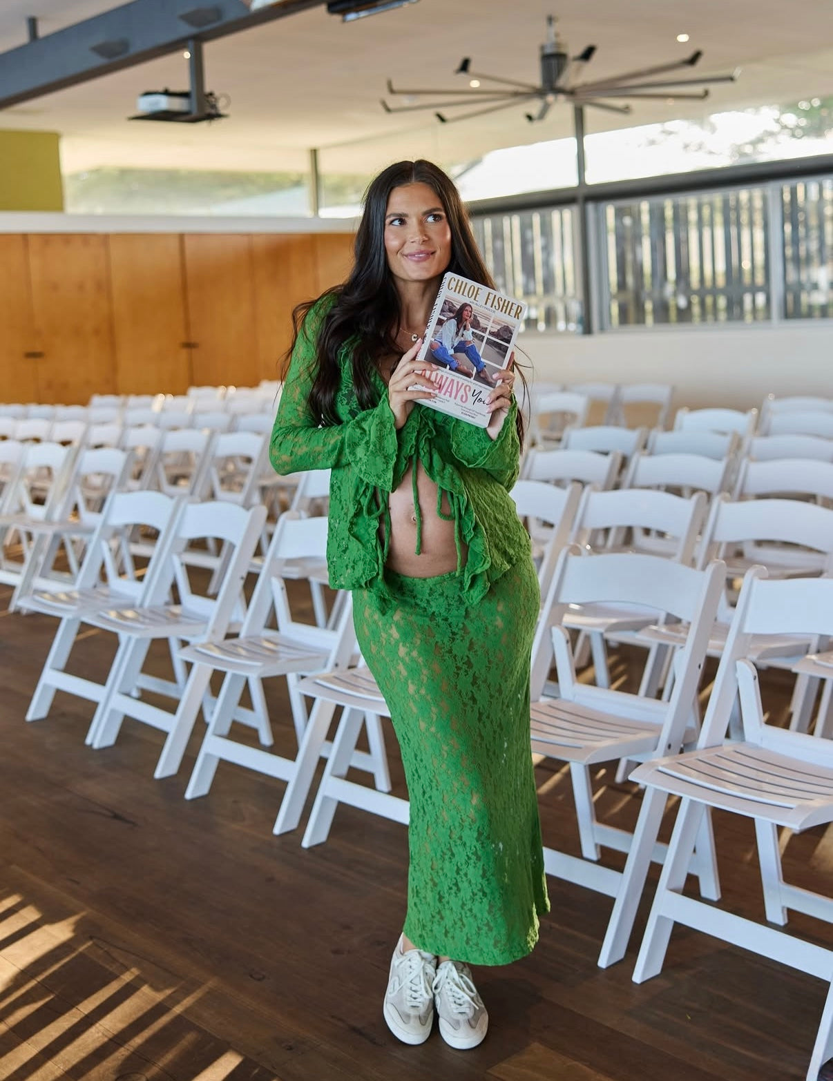 A long-sleeve tie top cut in our new super-soft stretch lace. The v-neck is adorned with elegant frills and three sets of ties at the centre front. This lace has an easy stretch, designed to mould to all body shapes. Soft on the skin, the piece is also easy to care for, and is machine-washable. Wear yours with the Uma Stretch Lace Skirt, the perfect piece for your next event or baby shower to showcase your bump in style